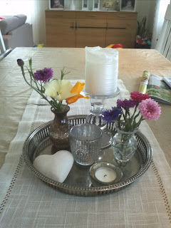 Små vaser er kjekt å ha :-) Har vært på utkikk etter det en stund, og plutselig fant vi flere å kjøpe! Blomstene er fra egen hage :-)